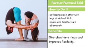 - For Balance and Flexibility- Both Partner Forward Fold and Twin Tree Pose are beneficial for increasing flexibility, coordination, and balance.
