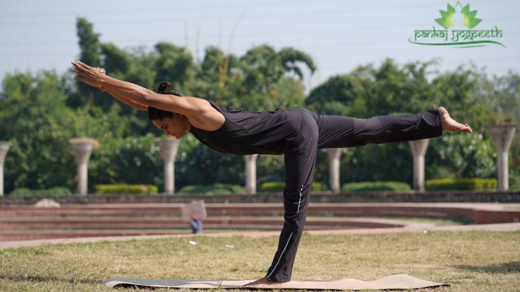 This pose engages the core and strengthens the muscles of the foot, promoting balance.